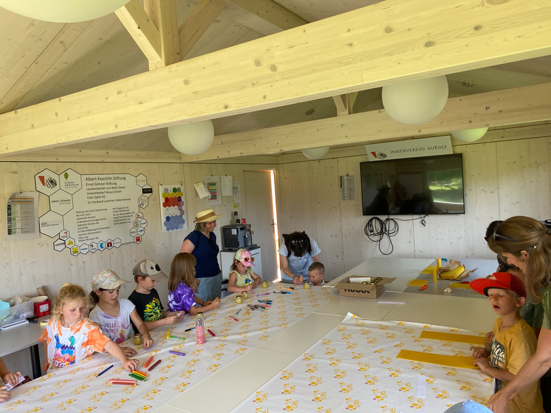 Es haben sich 30 Kinder mit ihren Begleitpersonen beim Alten Schulhaus versammelt. Von dort ging es in Richtung Unterdorf, wo wir bei den Obstbäumen einen Halt zum Ernten der Äpfel gemacht haben. Als alle Kinder ihre Fahrzeuge, Anhänger und Schubkarren befüllt hatten, ging es weiter zum Bauernhof der Familie Egli. Dort hat uns Denise Egli das Mosten erklärt und den Kindern gezeigt, was sie bei den einzelnen Stationen machen können. Beim ersten Posten konnten die Äpfel ausgeladen und gewaschen werden. Danach ging es weiter zum «Häckslere» der Äpfel. Die zerkleinerten Äpfel konnten dann zur Presse befördert werden und die Kinder konnten die manuelle Presse von Hand bedienen, sodass der süsse Saft der Äpfel nur noch so rausgeflossen ist. Nach getaner Arbeit durften alle ein feines Zvieri mit selbstgepresstem Apfelmost, Apfelschnitzen, Kuchen und etwas Süssem geniessen. Zum Schluss durften auch noch alle eine Flasche Most füllen und nach Hause nehmen. Ganz herzlichen Dank an die Familie Egli für den feinen Most und die tolle Begleitung beim Mosten.